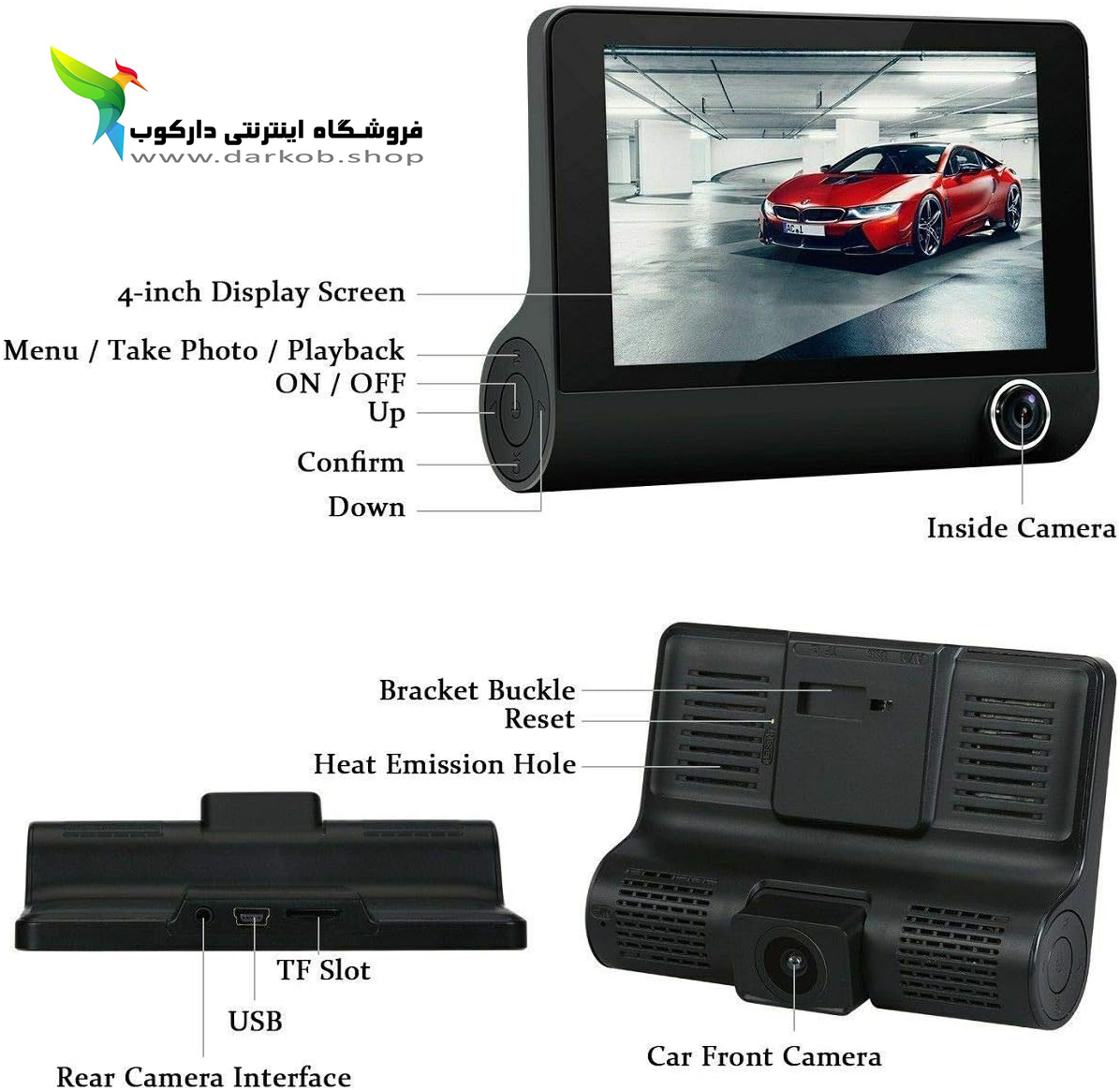 دوربین دنده عقب و ثبت وقایع خودرو، 3دوربین مانیتور دار مدل: KG1080 Pro