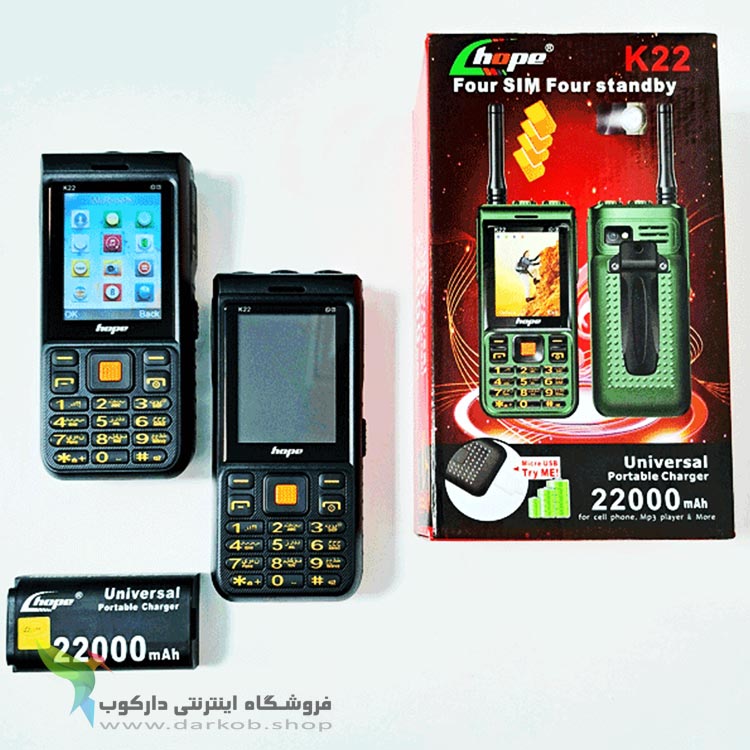 گوشی هوپ K24 نظامی، یک دستگاه چهار سیم کارته ارتشی است که با باتری 22000 میلی آمپر انرژی مورد نیاز را تأمین میکند. با قابلیت گیرنده تلویزیون و رادیو، این گوشی از ویژگیهای زیادی بهره میبرد.